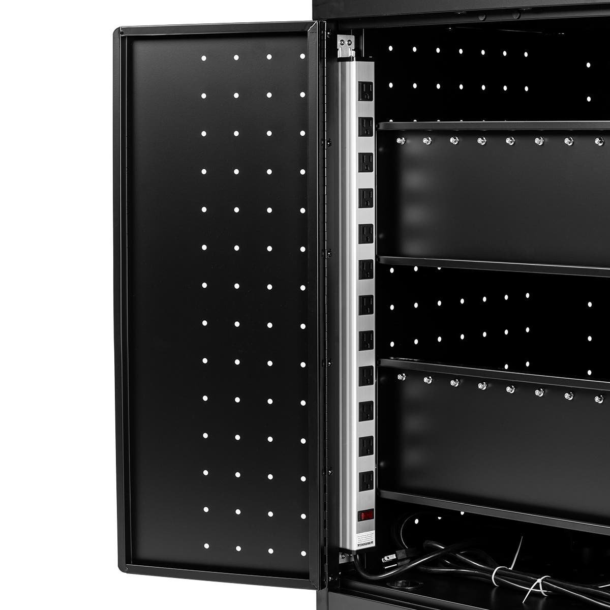Functionality meets durability with a Luxor Laptop / Chromebook Charging Cart. Lockable steel doors and rolling casters provide a rugged security/storage solution that’s easy to move. And with an electrical assembly and cord management system built inside the back of the unit, you’re able to organize and charge multiple devices at once – from laptops to Chromebooks. Rubber-coated dividers won’t scratch devices and help provide impact protection during transit. And assembly is simple – just attach the casters and handle, and you’re ready to roll.