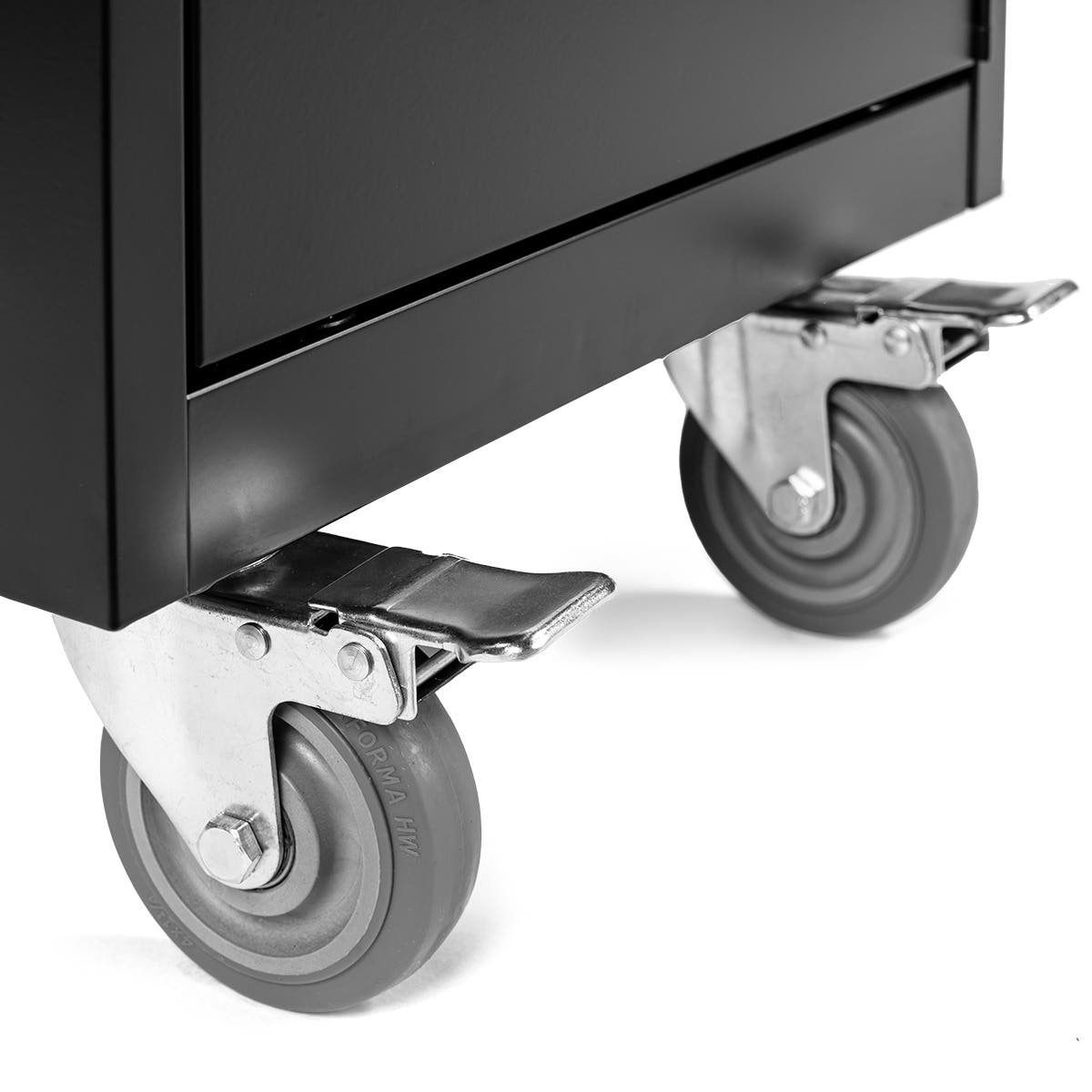 • Four 4″ casters, two with locking brakes, for easy maneuverability and stability
