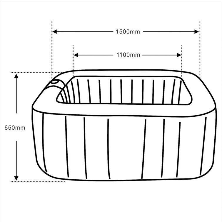 Overall2′ 2” H X 4′ 11” W X 4′ 11” DInterior Tub3′ 7”Internal Tub Height – Top to Bottom2′ 2” HInterior Bath Tub Depth – Front to Back3′ 7”Power Cord Length – End to End11′ 5 4/5”Overall Product Weight49 lb.Product Weight When Filled1336 lb.