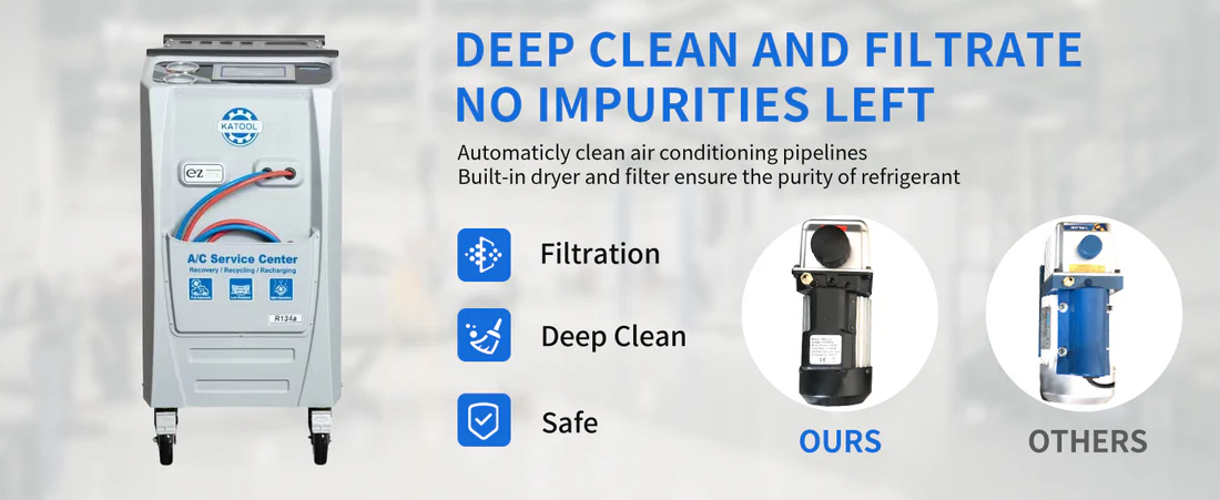 Efficiently recover, recycle, and recharge with the Fully Automatic Recovery Recycle And Recharge DUAL AC1800 Machine By KaTool. This advanced machine simplifies automotive service, saving time and increasing productivity. Its dual AC1800 capability can handle a wider range of vehicles, ensuring reliable performance and satisfied customers.