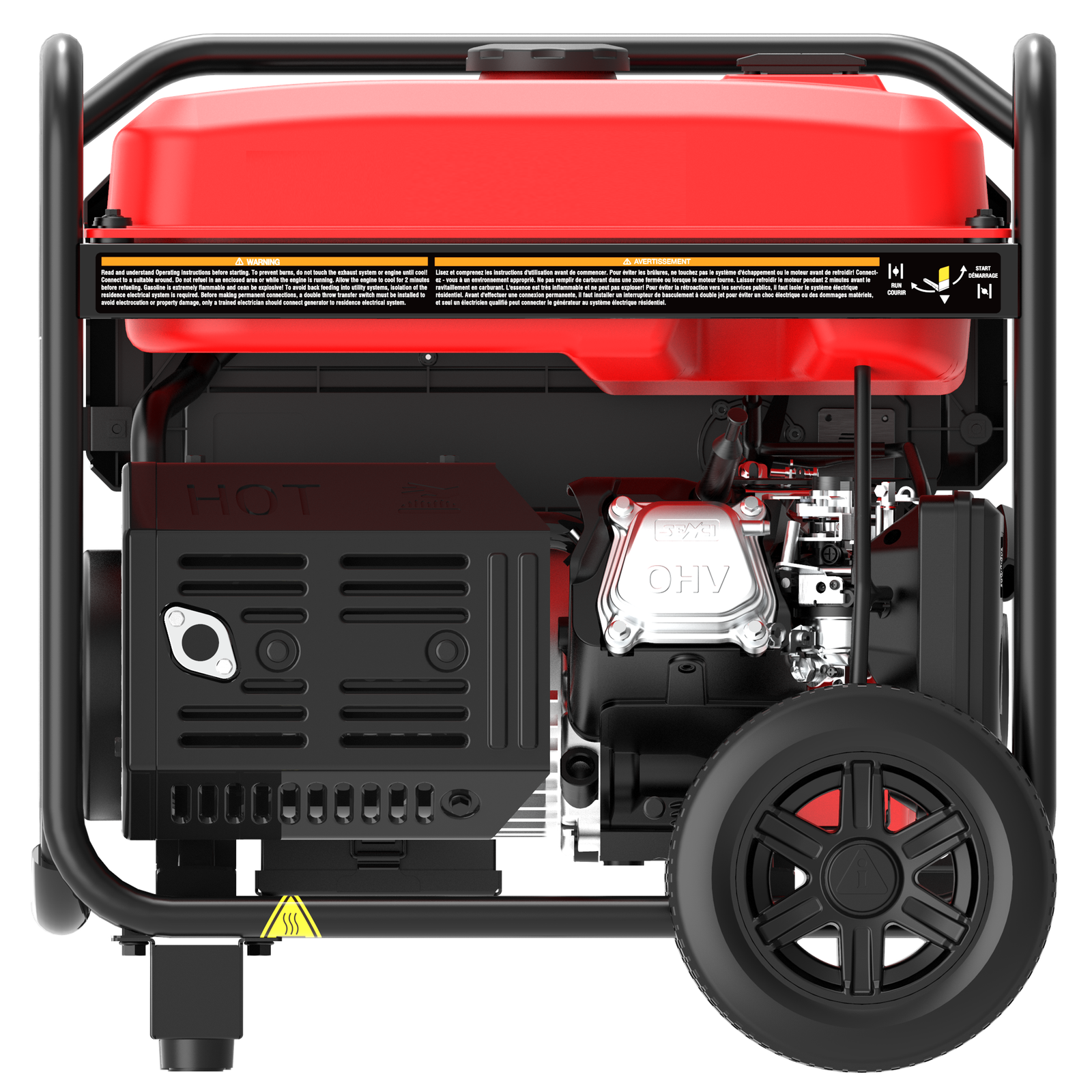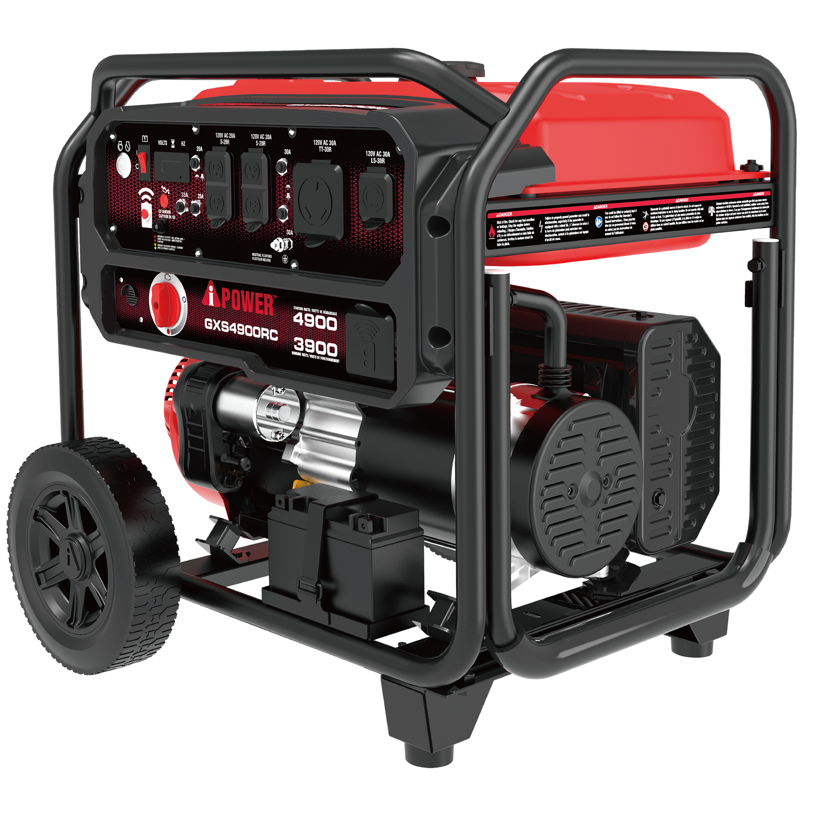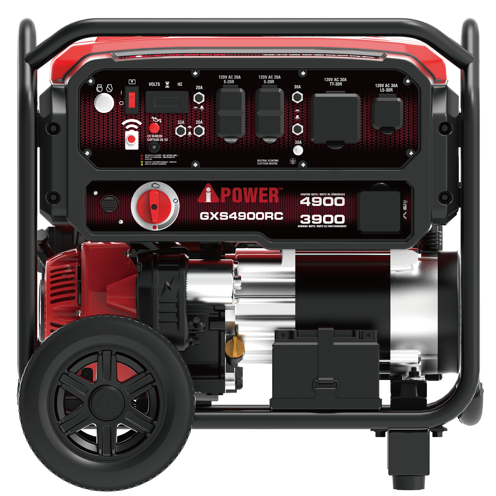 Easy to transport with folding handle and wheels, the built tough heavy duty frame construction has a durable automotive style finish while the rubber outlet covers help guard against moisture, dust, and debris. Featuring convenient, built in on-board storage and a digital data center that displays voltage, frequency, and hours, the unit offers simple starting via recoil, electric, and remote start, with a battery included. It also has a CO Sensor with automatic shutdown that monitors and reacts to carbon monoxide levels.