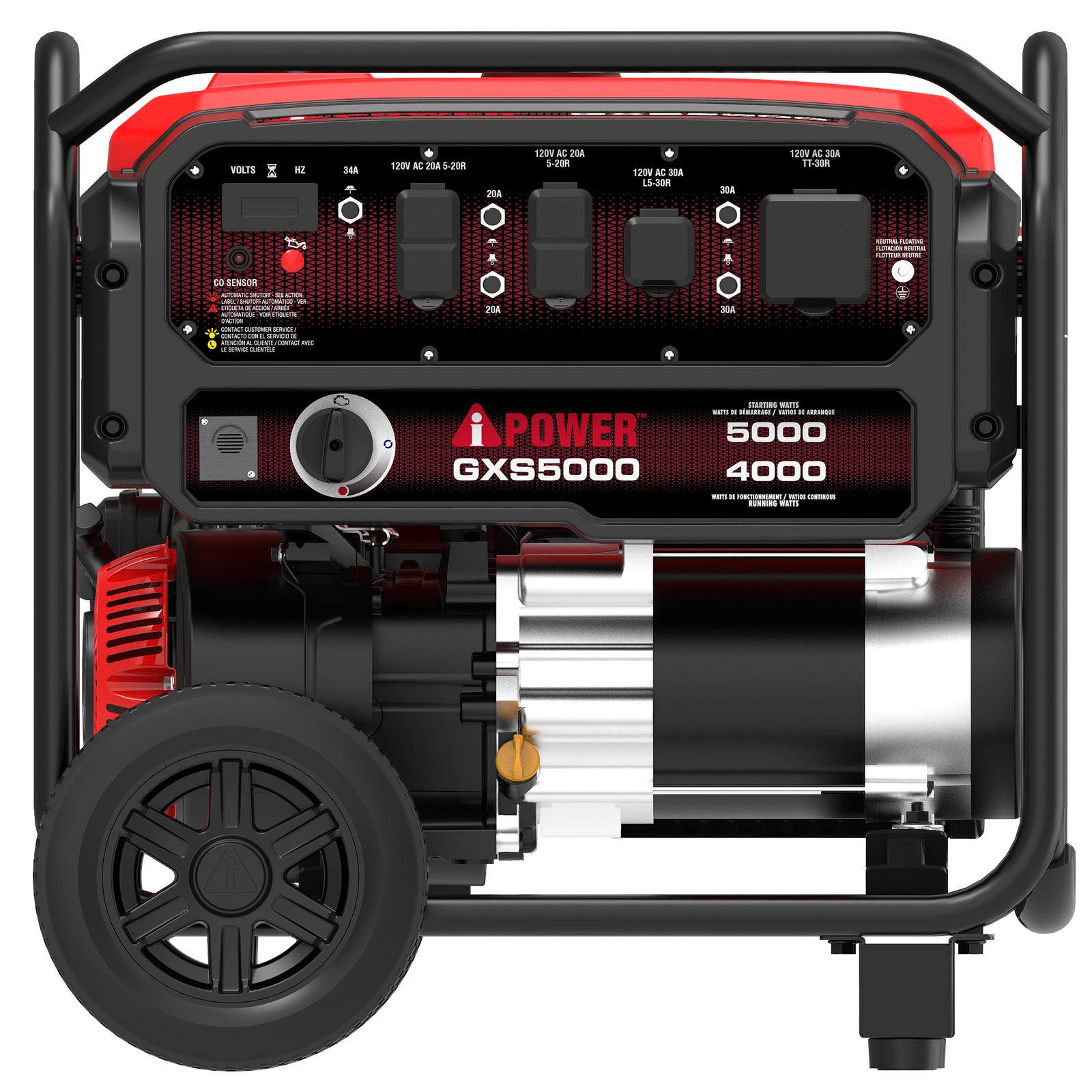 The unit has a Digital Data Center that displays voltage, frequency, and hours, while the Rubber Outlet Covers help guard against moisture, dust, and debris. The heavy duty frame construction has a durable automotive style finish, while the portable design makes the generator easy to transport, as there is a folding handle and wheels included. The CO Sensor monitors and reacts to carbon monoxide levels, as it has automatic shutdown.