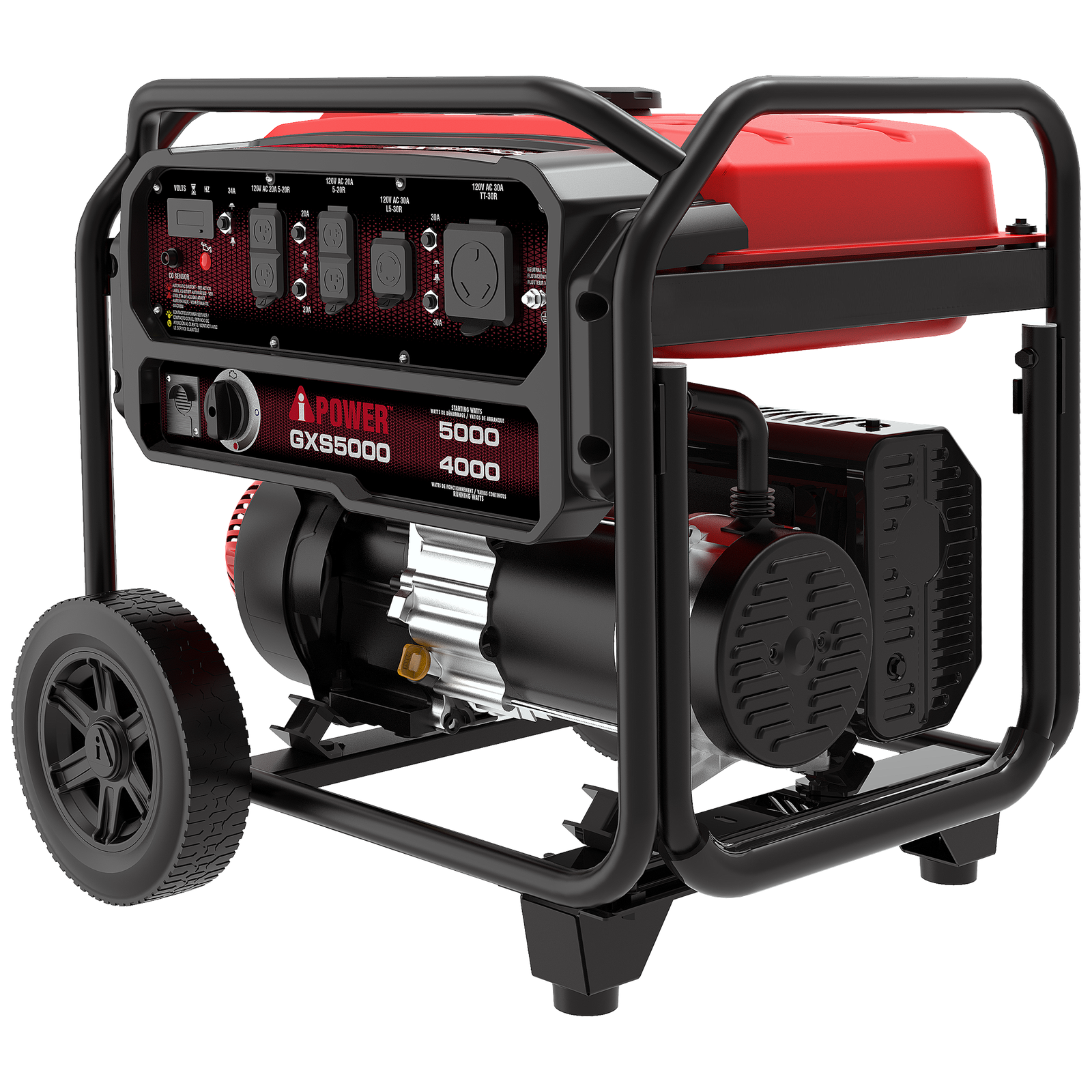 Featuring a 223cc OHV engine with cast iron sleeve and low oil shutdown, the GXS5000 Portable Generator has 5,000 starting watts and 4,000 running watts. The 6.3-gallon fuel tank provides an extended run time of up to 20 hours at 25% load.