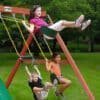 An adventure in sliding and climbing is waiting for your kids with the Five Star II Swing Set by Gorilla Playsets. This set includes fun filled features like an Alpine Wave Slideâ„¢, a Trapeze Swing, and TWO Deluxe Swing Belts. It even includes a Chalkboard for writing fun messages. The semi-enclosed clubhouse includes decorative window inserts and is protected with a tongue and groove wood roof. The wait is over, order yours today!