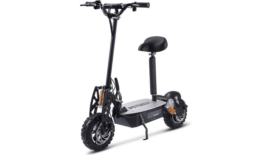 The MotoTec 2000 watt electric scooter MT-2000w_Black is the most powerful electric scooter we carry. Powered by 48 volts and a 2000 watt motor, there won’t be a hill you can’t conquer! Comes standard with a quick-release seat, foldable locking frame, large 11 inches knobby onroad/offroad tires, key ignition, and economy mode to conserve battery life for longer rides. This scooter does not disappoint!
