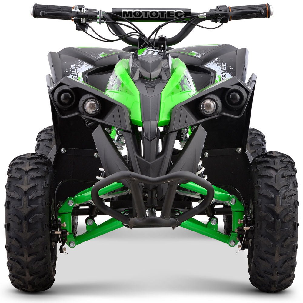 Are you ready for the most advanced kids electric atv on the market? The MotoTec 36v 500w Renegade is taking the top spot! No longer do you have to worry about a separate a chain, the Renegade is the first of its kind with a shaft drive motor. This means the rear axle goes through the center of the motor which provides more torque, higher top speeds and less maintenance. This is truly the ultimate kids atv! Great for driveway and backyard fun, cruise over bumps and speed through dirt trails with ease. Comes standard with front & rear suspension, front & rear brakes and large knobby pneumatic tires. This mini quad provides longer ride times than the competition with THREE large 12v 12 AMP hour batteries.