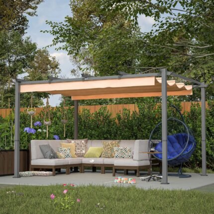 Stylish 10′ x 13′ Aluminum Patio Pergola with Retractable Canopy – Perfect Backyard Shade Shelter for Outdoor Parties